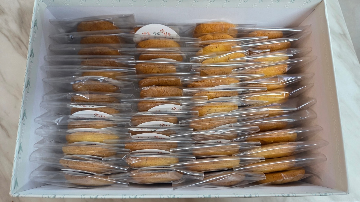 호두쿠키에 중요한 것은 역시나 호두입니다. 대산농원은 다양한 곳에 산재된 농가의 호두를 수매하여 가공하는 것이 아니라 경북 안동의 첩첩산중에서도 끝자락, 그야말로 청정지역에서 단일농장으로 직접생산한 호두를 쿠키의 주재료로 사용하였습니다.